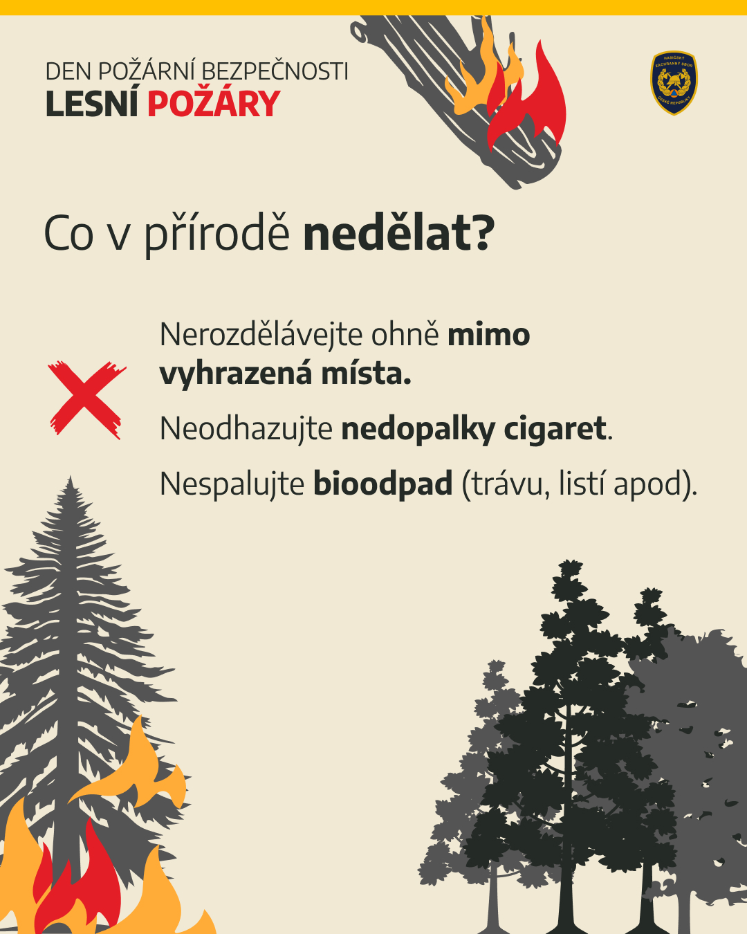 Hasičský záchranný sbor České republiky upozorňuje na důležitost požární bezpečnosti v lesích. Nejčastější příčinou požárů je lidská nedbalost, která může mít vážné důsledky pro přírodu. Oheň se v lesích šíří velmi rychle a může se vyskytovat i skrytě pod zemí, což ztěžuje jeho lokalizaci a likvidaci.